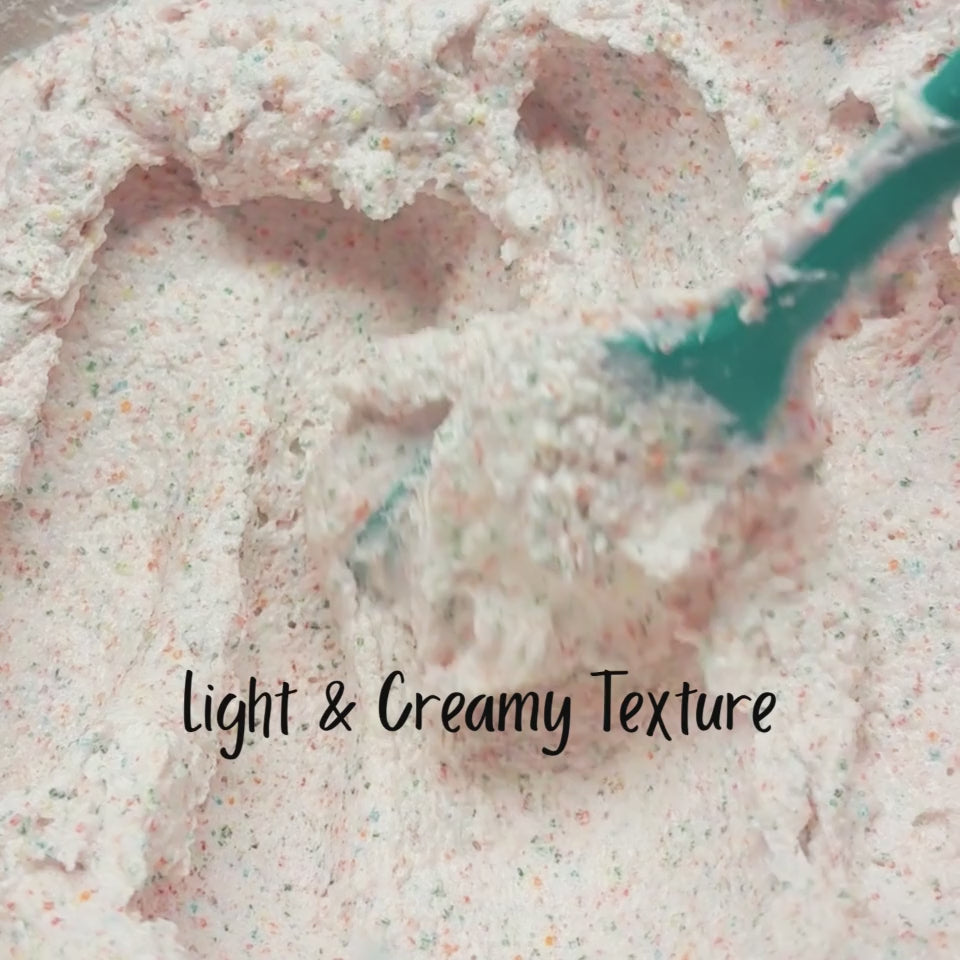 Celebrate winter skin care with Festive Frostbite, a luxuriously whipped tallow sugar scrub crafted to smooth, soften, and nourish dry winter skin. A colorful blend of sugars—resembling twinkling holiday Christmas lights— creates a creamy, whipped texture that gently buffs away dullness while delivering rich moisture.